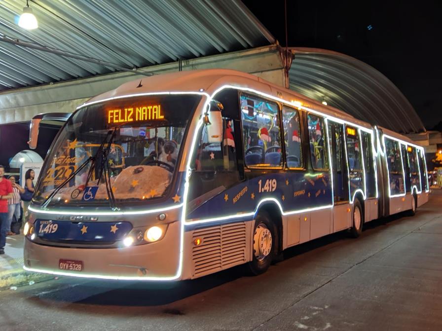 Mais uma vez, o ônibus decorado com motivos natalinos, estará circulando, oferecendo um ambiente mais agradável e divertido aos usuários.