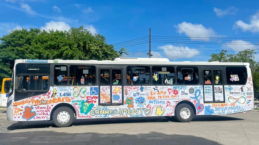 O Ônibus do Autismo, grafitado com mensagens de respeito e inclusão às pessoas com autismo circulará pelas ruas da Região Metropolitana do Recife até o fim do mês de maio.